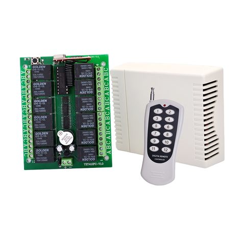 YET412 + YET112D 12 yollu röle anahtarı 12V uzun menzilli su geçirmez otomatik anti-şok uzaktan kumanda kablosuz verici